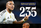 【里程碑】26岁的皇马前锋姆巴佩在五大联赛打入235球,超越亨利,成为五大联赛进球第三多的法国籍球员,仅次于255球的拉孔布和281球的本泽马。