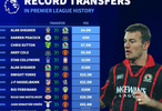博格巴则是英超历史上首位花费超过1亿欧元的引援,如今英超历史标王头衔则属于今年夏窗从纽卡斯尔联转投利物浦的伊萨克。