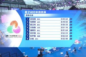 体育资讯11月10日讯 全运会男子400米自由泳预赛第4组,孙杨和潘展乐出战。