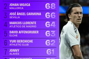 本赛季西甲球员夺回球权次数排行:A费79次居首,略伦特64次第4