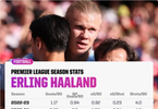 哈兰德本赛季多项数据创生涯新高 每90分钟1.36球