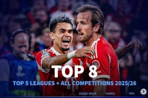 五大联赛球队本赛季各项赛事场均拿分榜:(及球队总身价)